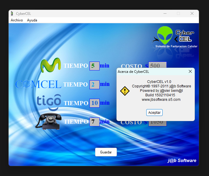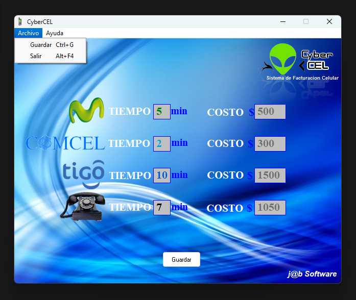 CyberCel® es un prototipo de software de aplicación de escritorio desarrollado en el año 2011, concebido como una solución tecnológica orientada a la sistematización del servicio de venta de minutos telefónicos, una actividad ampliamente utilizada en pequeños comercios, cabinas telefónicas y centros de comunicación durante esa época.