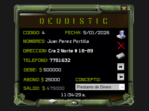 El sistema permitía llevar un inventario estructurado de deudas, almacenando información esencial de clientes y montos adeudados. Entre sus funciones principales se incluían: