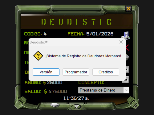 Deudistic® es un prototipo de software de escritorio desarrollado alrededor del año 2013, concebido como una solución práctica y tecnológica para una problemática cotidiana y recurrente en pequeños y medianos centros de comercio: la gestión informal de deudas de clientes y el control manual de cuentas por cobrar.